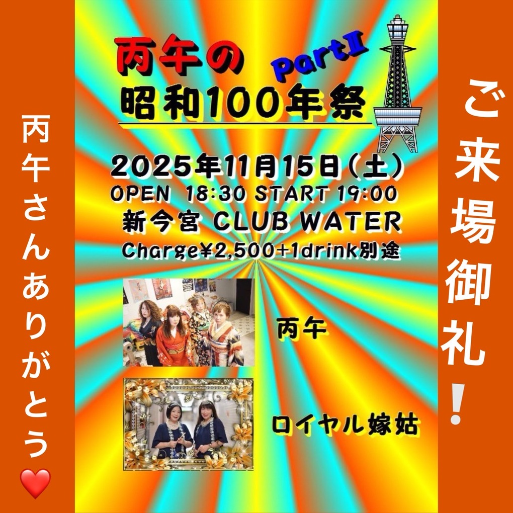 凄腕バンド、丙午さん。情念渦巻く女のSAGA !抱腹絶倒MC砲。 ご一緒できて光栄でございます。 さすが丙午のファンの皆様。とにかくドッカンドッカン笑うてくれはる。ありがとうございました。